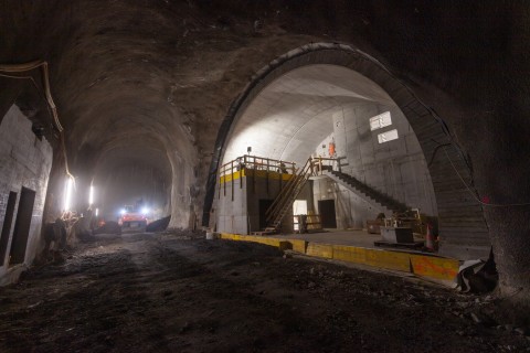 Der fehlende Raum im Portalbereich wirkt sich auch auf die Ausgestaltung der Stollenanlage aus: Die Lüftungszentrale wird rund 250 Meter in den Berg verschoben und nun unterirdisch gebaut. Dazu wurde eine Längs- und eine Querkaverne ausgebrochen, in der die gesamte Technik untergebracht wird.