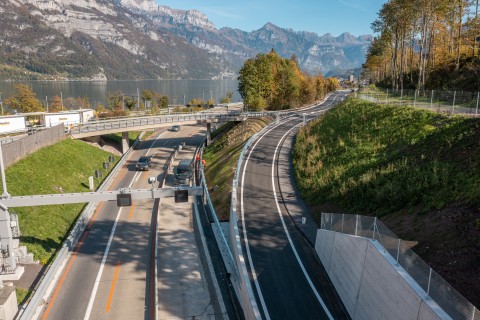Der Betriebsanschluss wurde im Rahmen des Gesamtprojektes erstellt. Dank ihm können Anwohnende die Nationalstrasse in Murg auch während der für die Instandsetzung notwendigen Tunnelsperrungen verlassen. Zum Betriebsanschluss gehört auch ein neuer Kreisel beim bestehenden Autobahnanschluss.