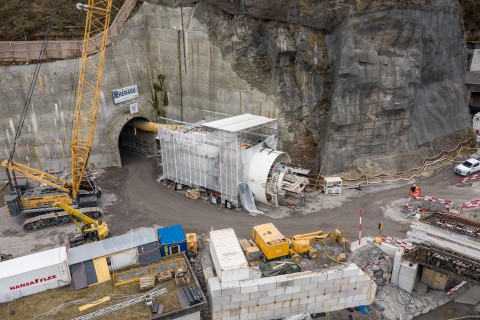 Beim Portal Gäsi war während des mehrwöchigen Aufbaus der Tunnelbohrmaschine eine Zeitrafferkamera installiert. Die Aufzeichnungen zeigen zuerst den Aufbau der eigentlichen Tunnelbohrmaschine – gefolgt von der Montage der Nachlaufkonstruktion.