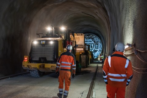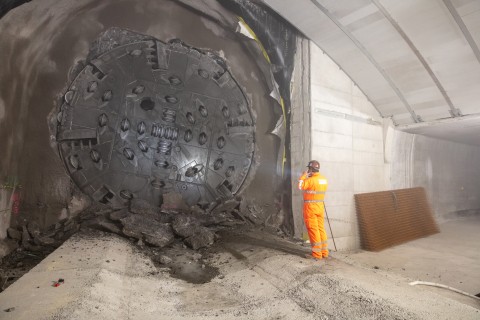 Tunnelbohrmaschine in Betrieb