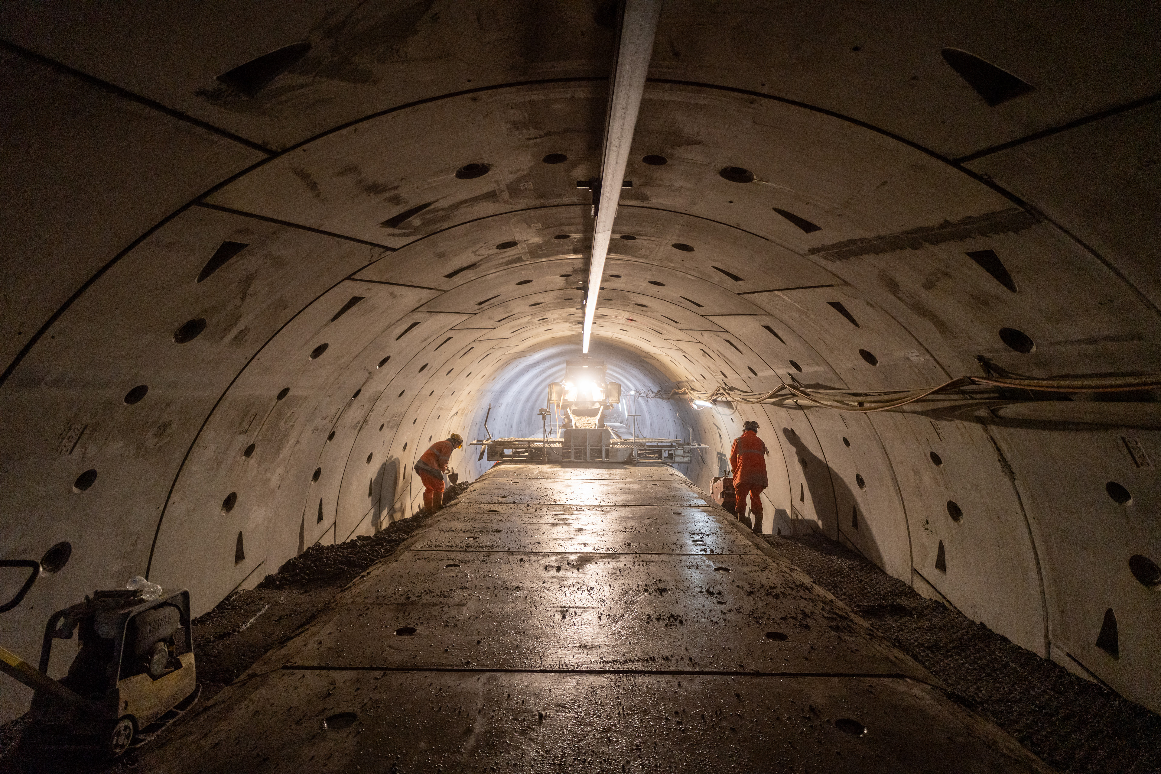 Der Werkleitungskanal «WELK» ist ein zentrales Sicherheitselement bei der Gesamterneuerung des Kerenzerbergtunnels. Er dient in erster Linie als Fluchtweg im Ereignisfall. Zusätzlich verlaufen darin die Strom- und Datenversorgungskabel. Im darüberliegenden, abgetrennten Teil befindet sich der Abluftstollen.