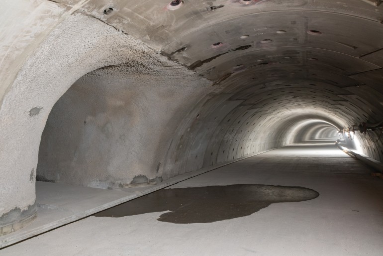 Im Sicherheitsstollen des Kerenzerbergtunnels. April 2023.