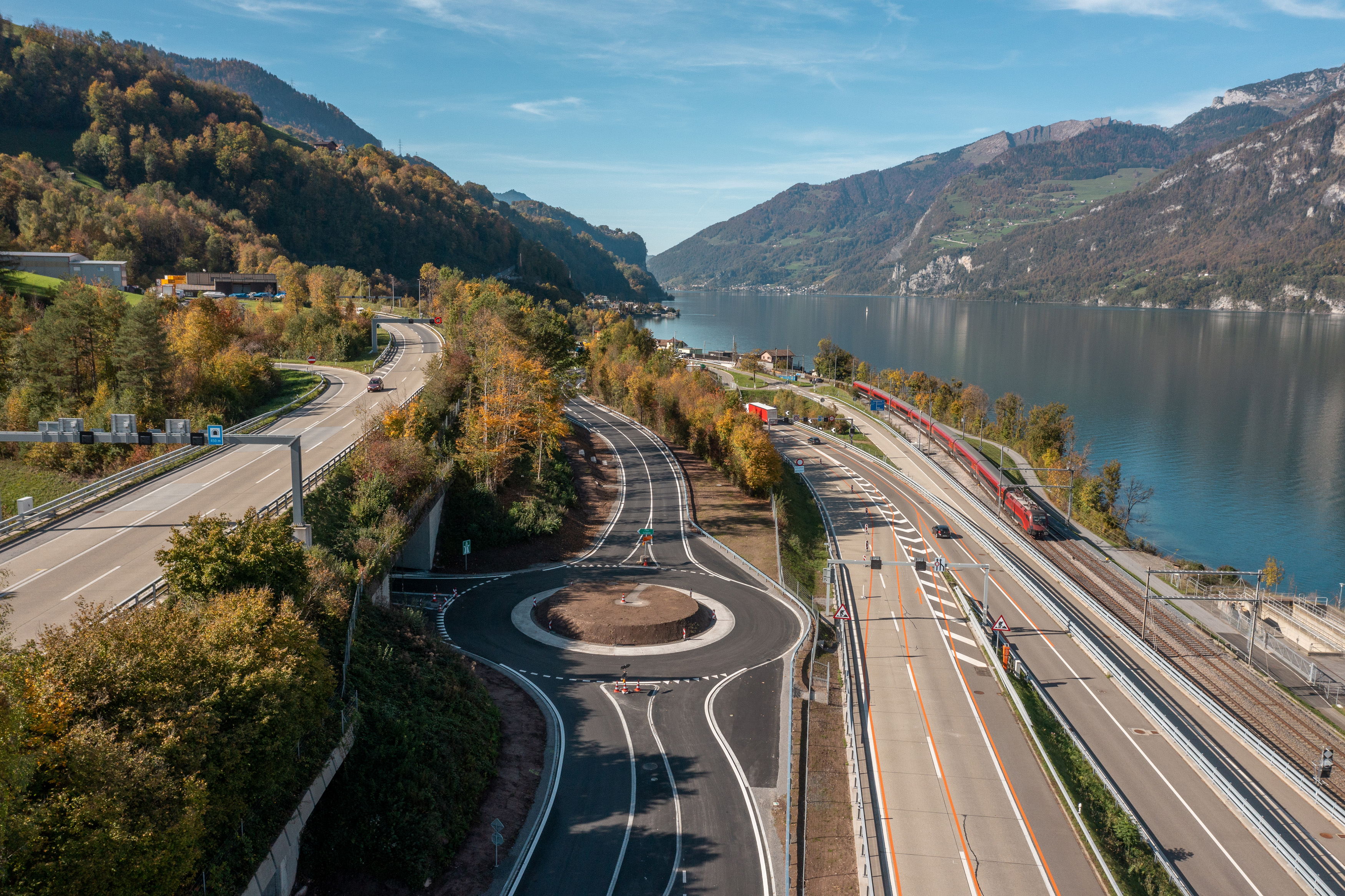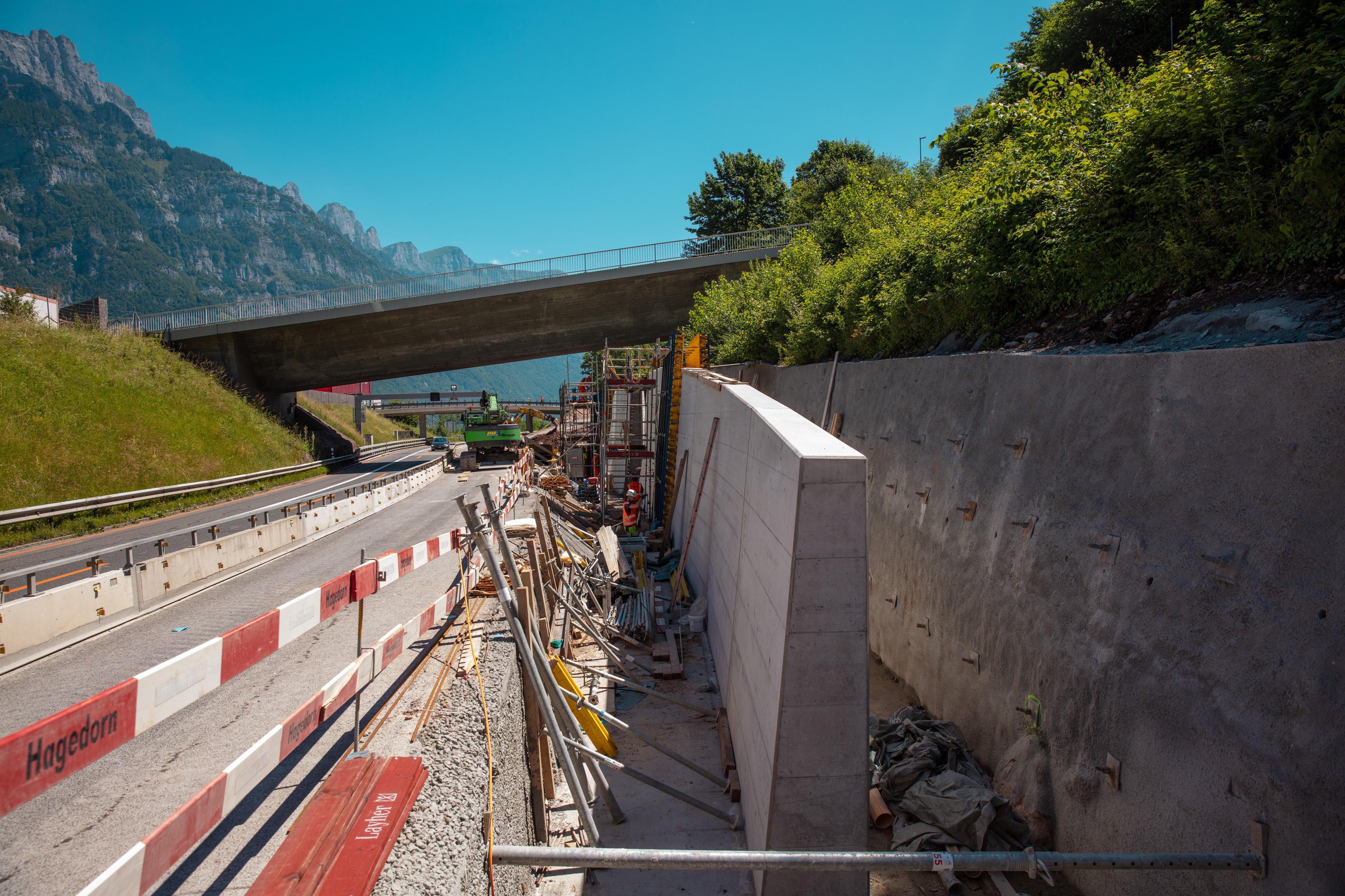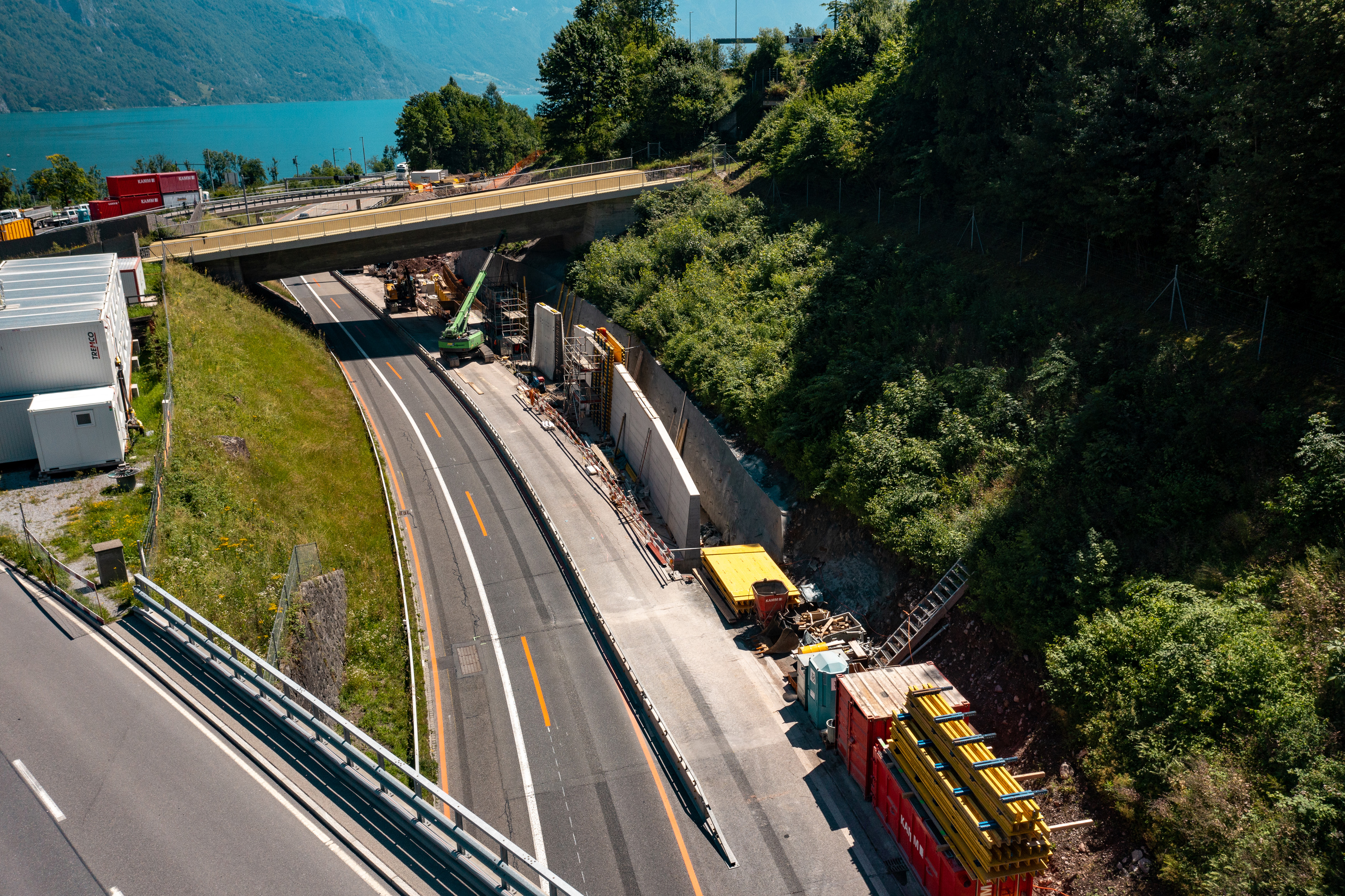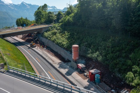 Der Betriebsanschluss wurde im Rahmen des Gesamtprojektes erstellt. Dank ihm können Anwohnende die Nationalstrasse in Murg auch während der für die Instandsetzung notwendigen Tunnelsperrungen verlassen. Zum Betriebsanschluss gehört auch ein neuer Kreisel beim bestehenden Autobahnanschluss.
