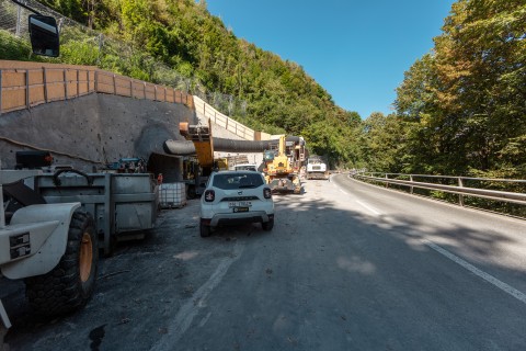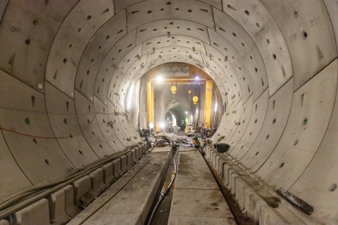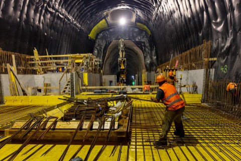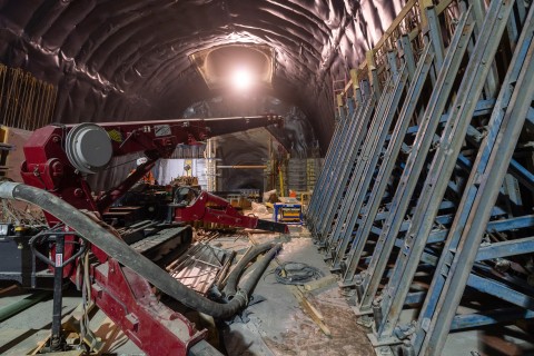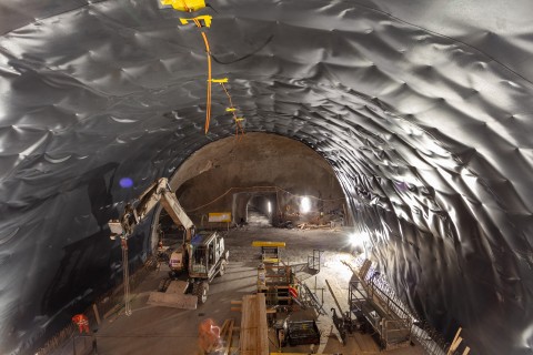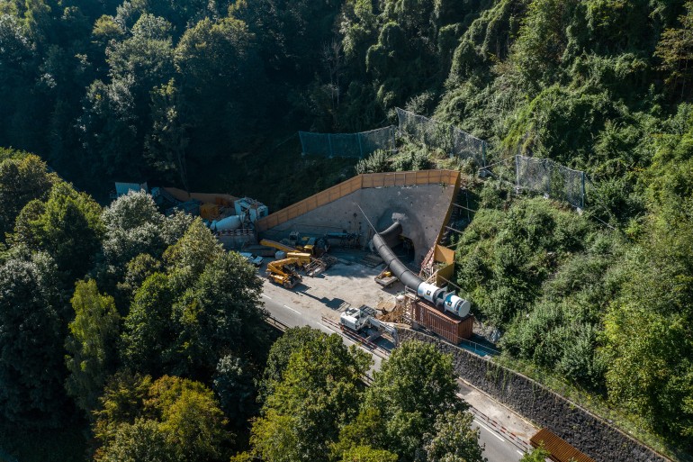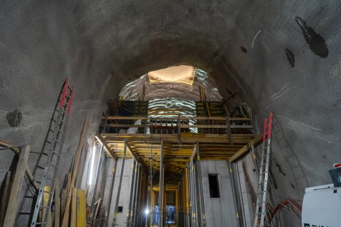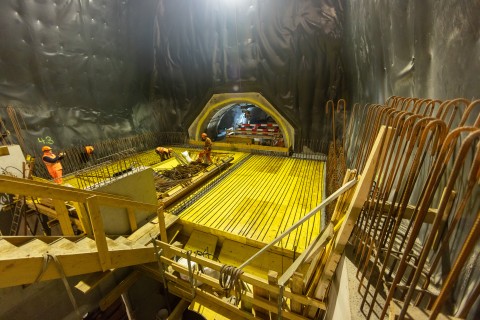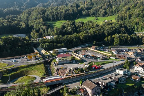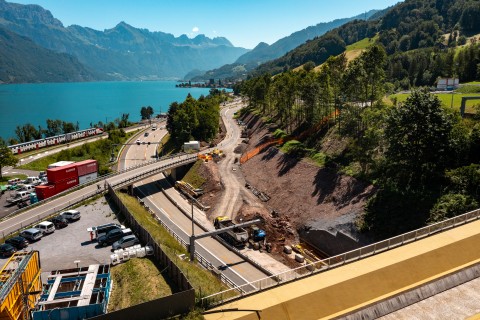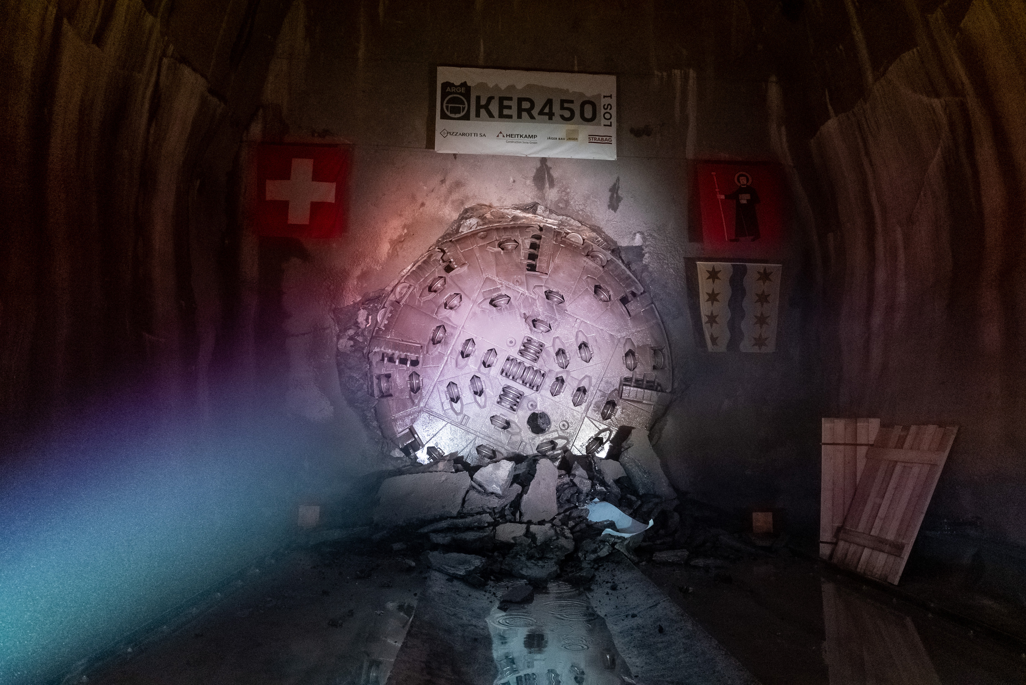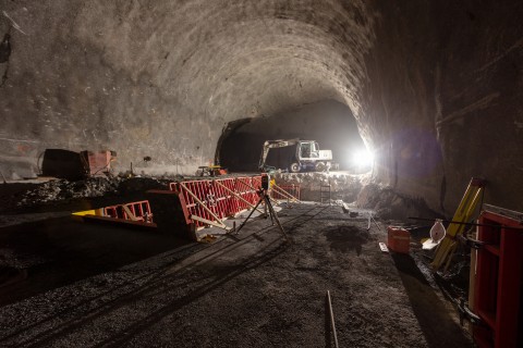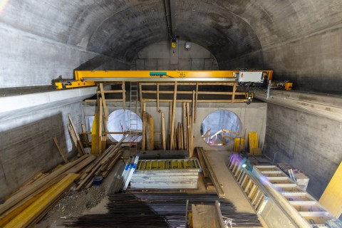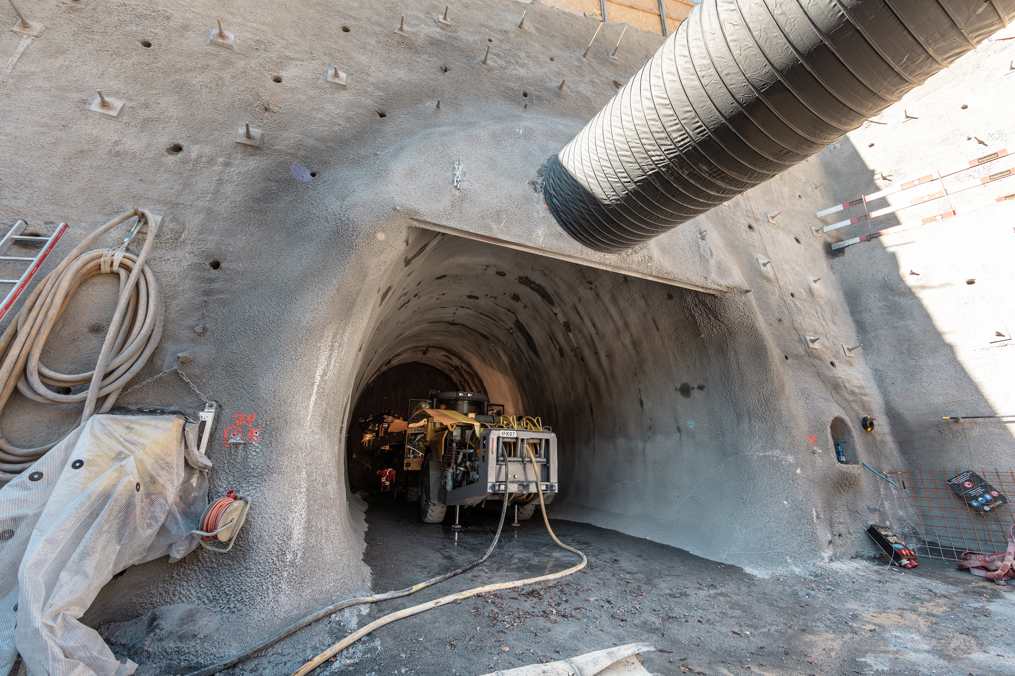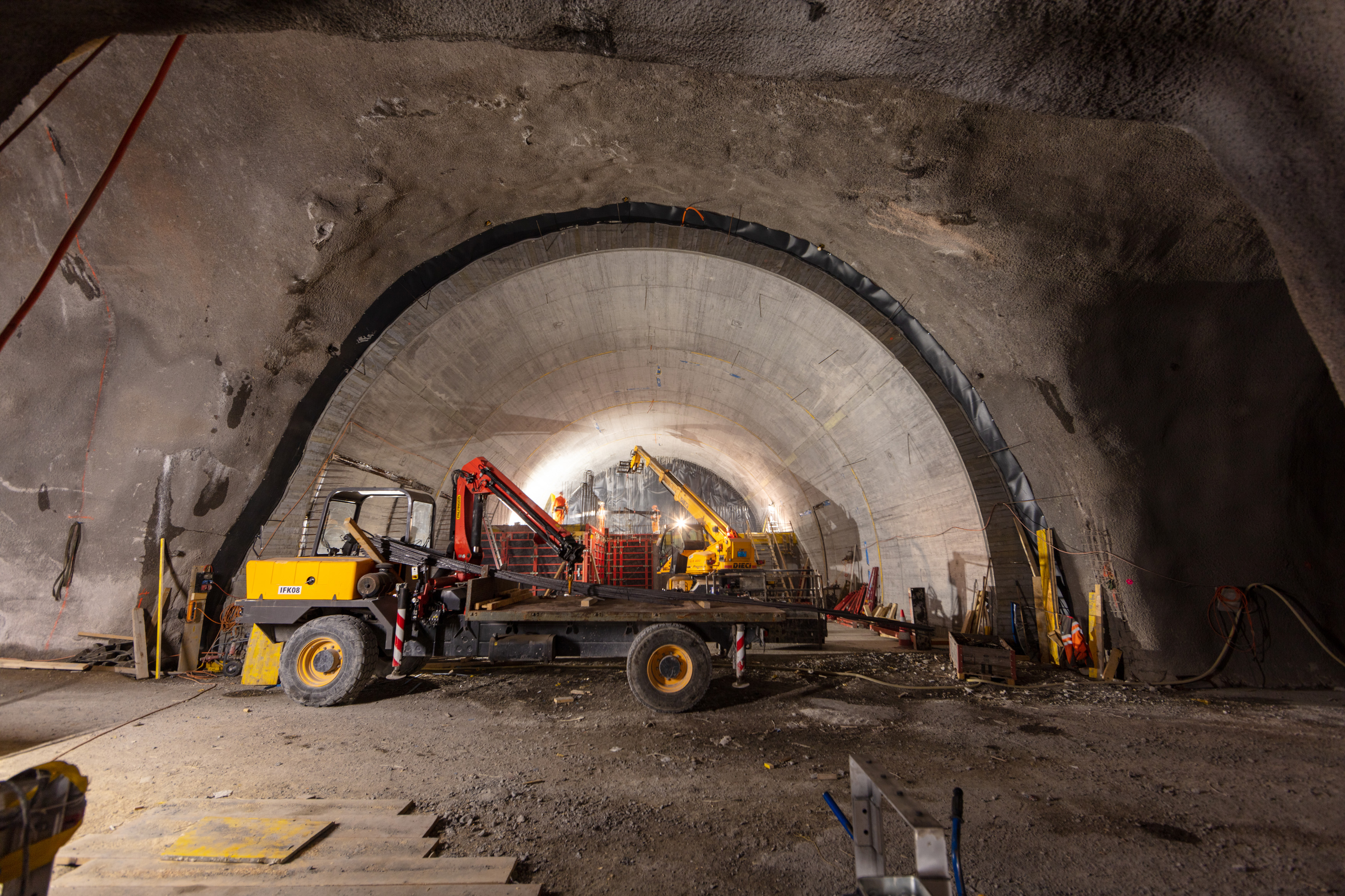 Der fehlende Raum im Portalbereich wirkt sich auch auf die Ausgestaltung der Stollenanlage aus: Die Lüftungszentrale wird rund 250 Meter in den Berg verschoben und nun unterirdisch gebaut. Dazu wurde eine Längs- und eine Querkaverne ausgebrochen, in der die gesamte Technik untergebracht wird.