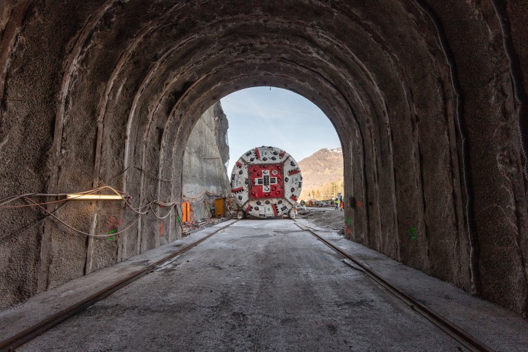 Tunnelbohrmaschine in Betrieb