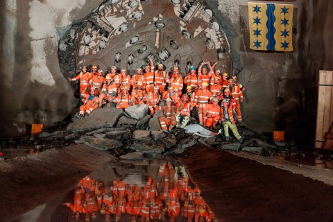Der Durchstich ist in jedem Tunnelprojekt ein wesentlicher Meilenstein. Der finale Durchstich erfolgte Ende September 2022 in Tiefenwinkel. Bei der entsprechenden Feier, der die Verantwortlichen des Tunnelprojektes beiwohnten, durchbrach der Bohrkopf die Wand zur Kaverne der künftigen Lüftungszentrale im Tiefenwinkel: