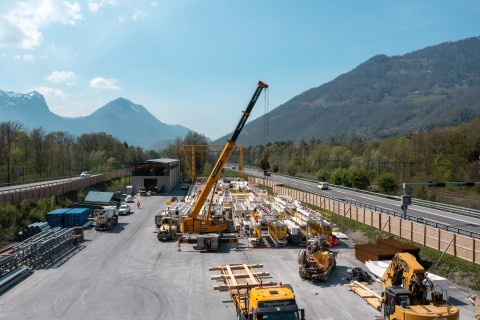 Beim Portal Gäsi war während des mehrwöchigen Aufbaus der Tunnelbohrmaschine eine Zeitrafferkamera installiert. Die Aufzeichnungen zeigen zuerst den Aufbau der eigentlichen Tunnelbohrmaschine – gefolgt von der Montage der Nachlaufkonstruktion.